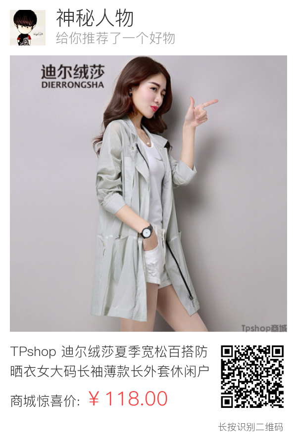 TPshop 迪尔绒莎夏季宽松百搭防晒衣女大码长袖薄款长外套休闲户外中长款防晒服防紫外线7931