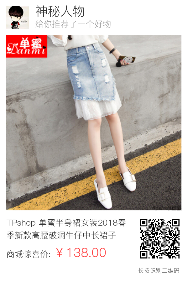 TPshop 单蜜半身裙女装2018春季新款高腰破洞牛仔中长裙子