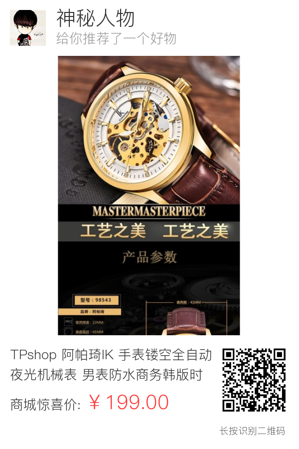 TPshop 阿帕琦IK 手表镂空全自动夜光机械表 男表防水商务韩版时尚休闲腕表学生运动男士手表新款钟表 金边白面金机心/过万评价