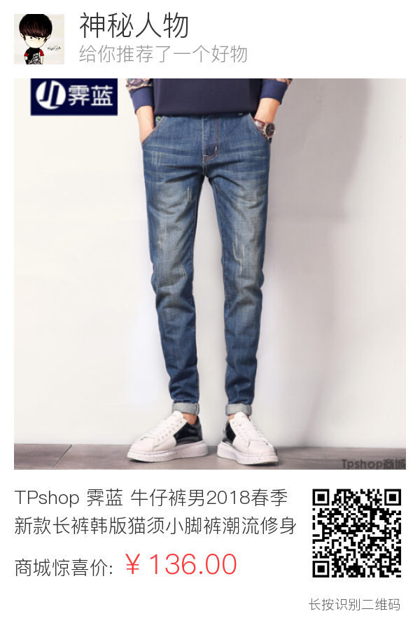 TPshop 霁蓝 牛仔裤男2018春季新款长裤韩版猫须小脚裤潮流修身男裤