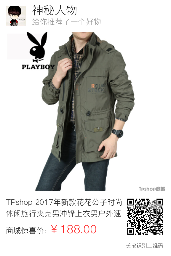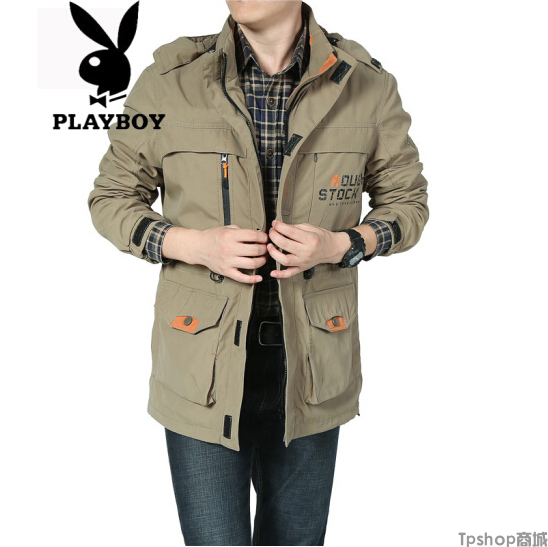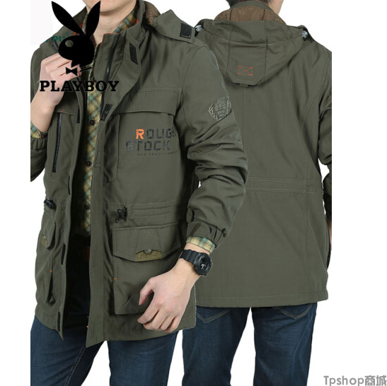TPshop 2017年新款花花公子时尚休闲旅行夹克男冲锋上衣男户外速干衣夹克外套多口袋冲锋衣男外套