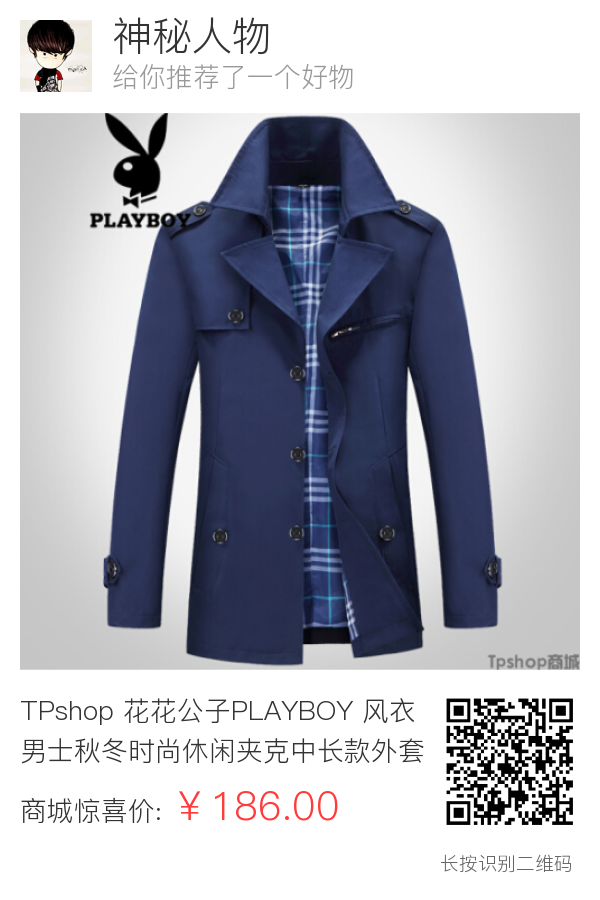 TPshop 花花公子PLAYBOY 风衣男士秋冬时尚休闲夹克中长款外套男装