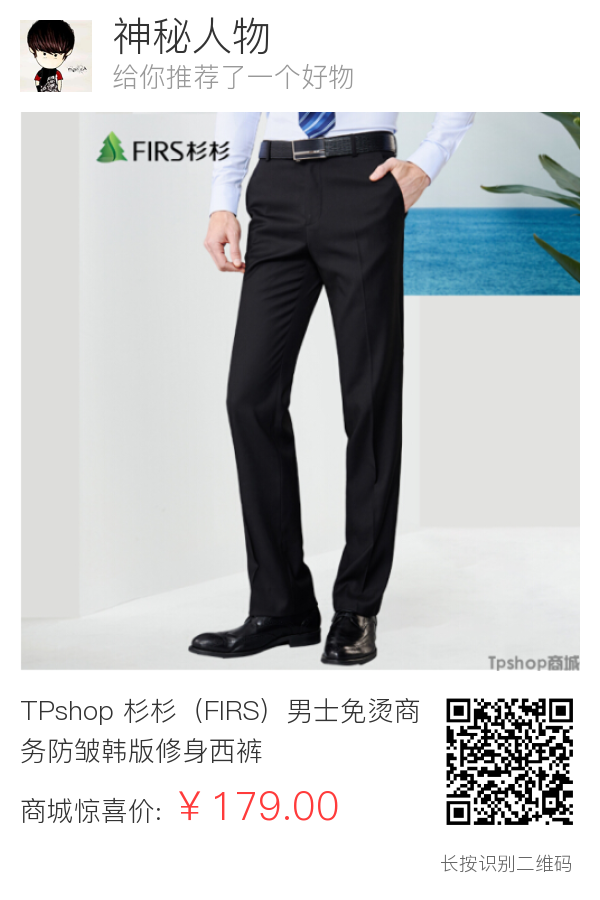 TPshop 杉杉(FIRS)男士免烫商务防皱韩版修身西裤