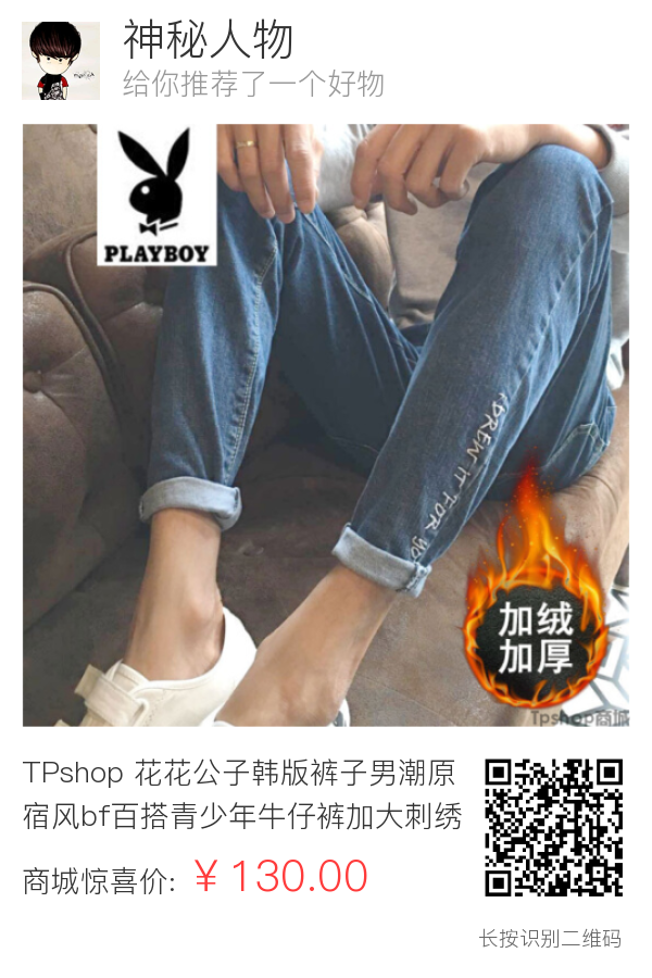 TPshop 花花公子韩版裤子男潮原宿风bf百搭青少年牛仔裤加大刺绣学生修身小脚裤