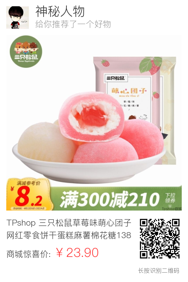 TPshop 三只松鼠草莓味萌心团子 网红零食饼干蛋糕麻薯棉花糖138g袋