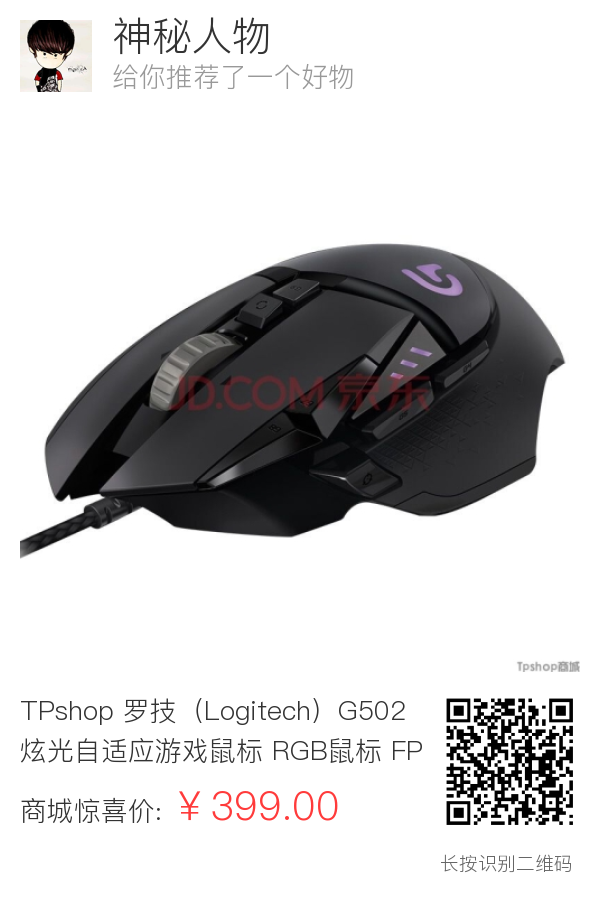 TPshop 罗技(Logitech)G502 炫光自适应游戏鼠标 RGB鼠标 FPS鼠标 吃鸡鼠标 绝地求生