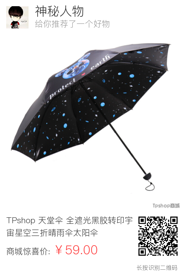TPshop 天堂伞 全遮光黑胶转印宇宙星空三折晴雨伞太阳伞
