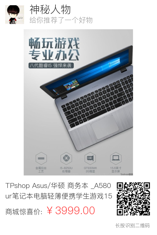 TPshop Asus/华硕 商务本 _A580ur笔记本电脑轻薄便携学生游戏15.6英寸i5 八代酷睿i5 四色炫彩机身