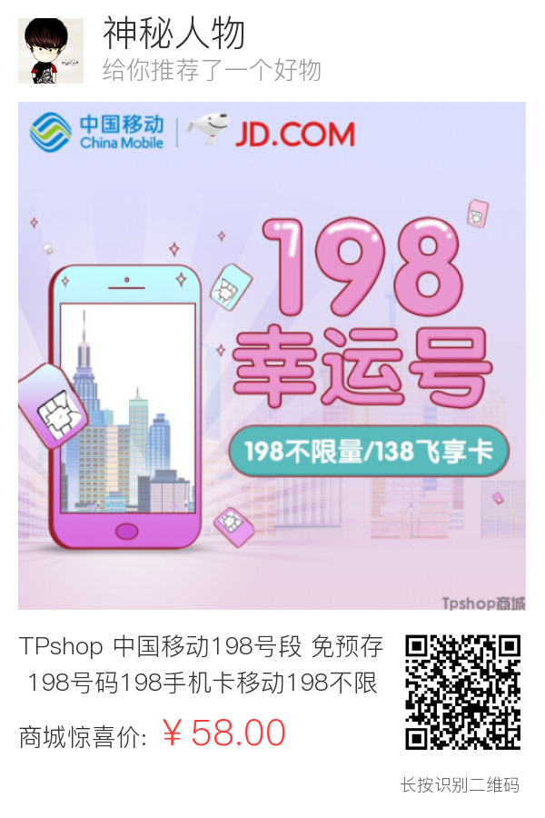 TPshop 中国移动198号段 免预存 198号码198手机卡移动198不限量流量卡上网卡电话卡