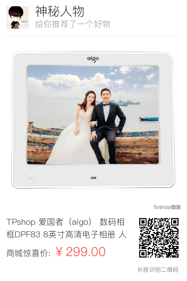 TPshop 爱国者(aigo) 数码相框DPF83 8英寸高清电子相册 人体感应 支持视频音乐 SD卡/U盘直插 礼品佳选 亮白色