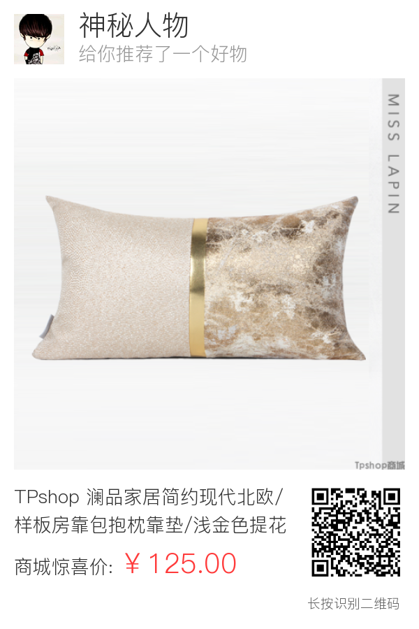 TPshop 澜品家居简约现代北欧/样板房靠包抱枕靠垫/浅金色提花拼接腰枕