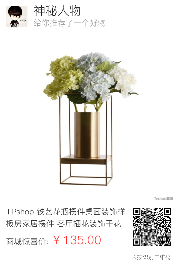TPshop 铁艺花瓶摆件桌面装饰样板房家居摆件 客厅插花装饰干花花瓶