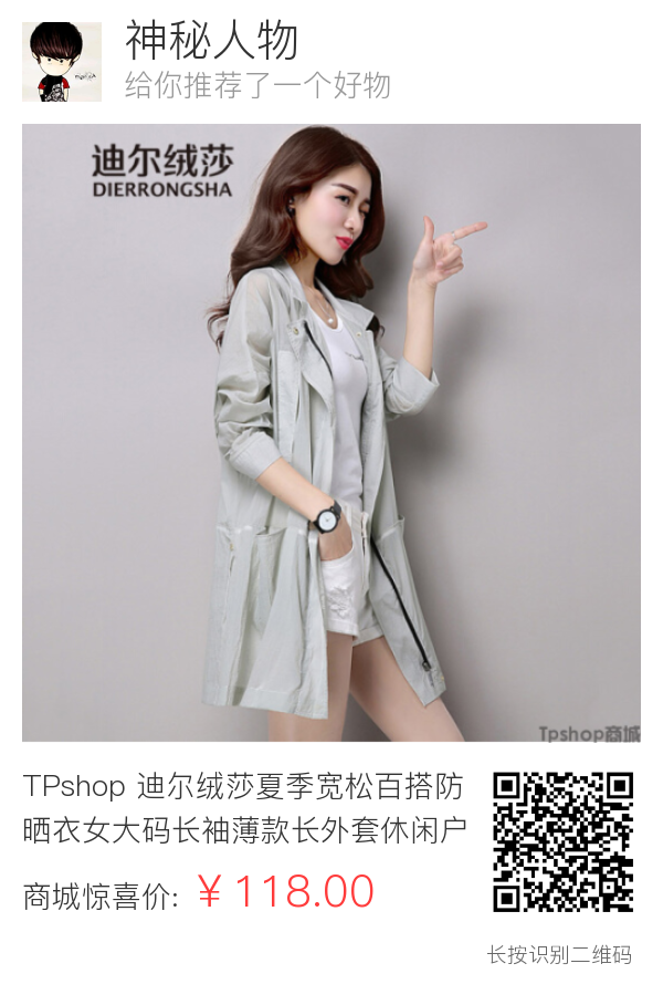TPshop 迪尔绒莎夏季宽松百搭防晒衣女大码长袖薄款长外套休闲户外中长款防晒服防紫外线7931