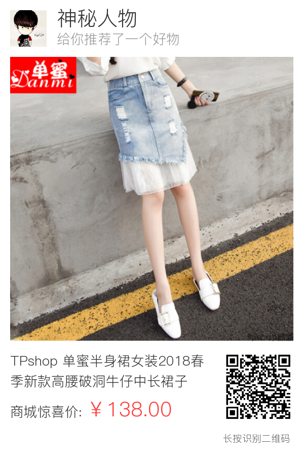 TPshop 单蜜半身裙女装2018春季新款高腰破洞牛仔中长裙子