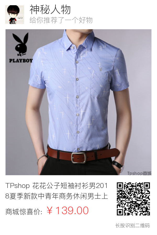 TPshop 花花公子短袖衬衫男2018夏季新款中青年商务休闲男士上班修身免烫男士衬衣