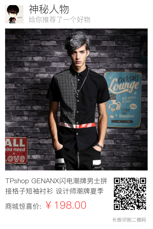 TPshop GENANX闪电潮牌男士拼接格子短袖衬衫 设计师潮牌夏季商务休闲免烫立领衬衫男潮