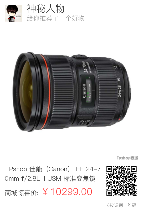 TPshop 佳能(Canon) EF 24-70mm f/2.8L II USM 标准变焦镜头