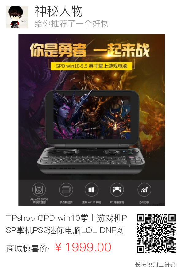 TPshop GPD win10掌上游戏机PSP掌机PS2迷你电脑LOL DNF网游