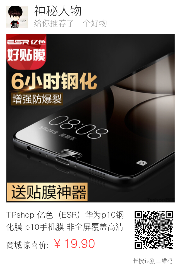 TPshop 亿色(ESR)华为p10钢化膜 p10手机膜 非全屏覆盖高清透明防指纹玻璃贴膜