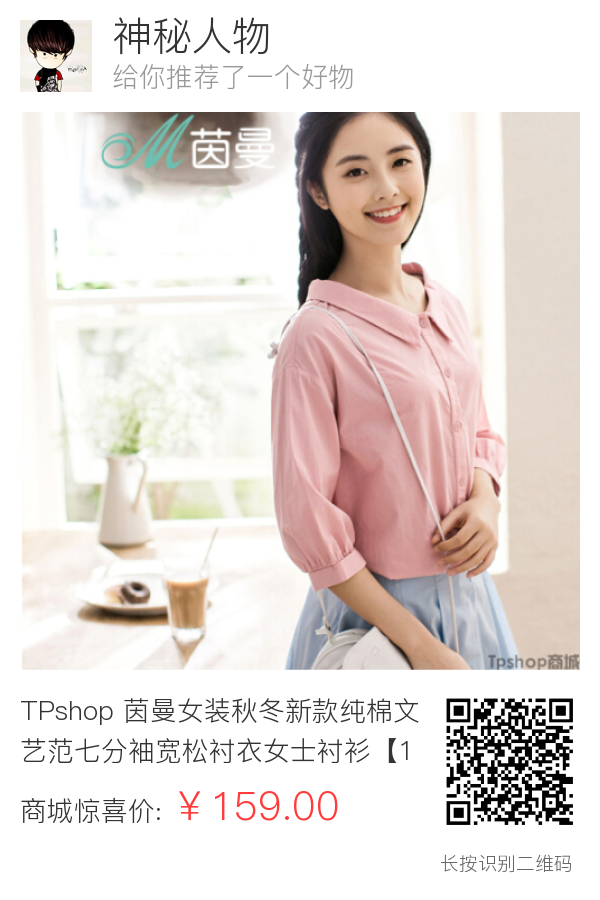 TPshop 茵曼女装秋冬新款纯棉文艺范七分袖宽松衬衣女士衬衫【18610VP11221】