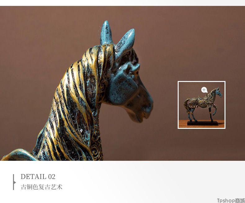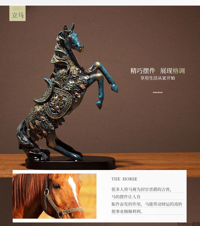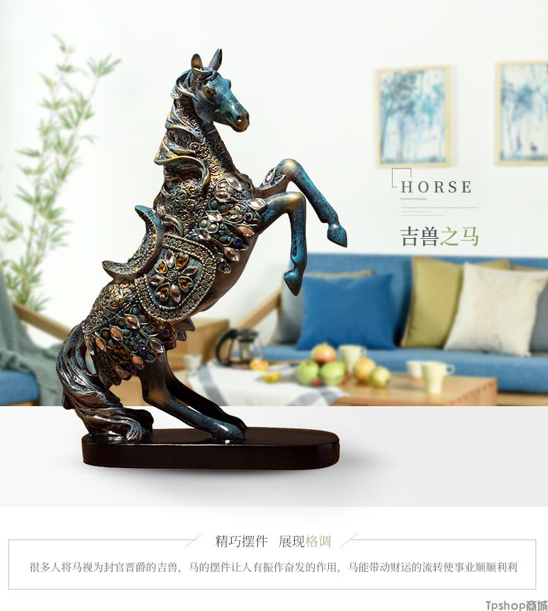 TPshop 马到功成战马摆件摆件家居装饰品客厅酒柜玄关书房办公室桌面装饰艺术品生肖动物骏马装饰摆件招财工艺品 FX-068-01B 平马