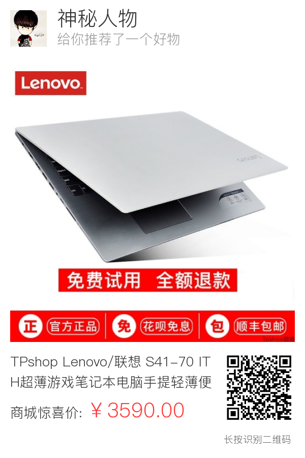 TPshop Lenovo/联想 S41-70 ITH超薄游戏笔记本电脑手提轻薄便携 学生