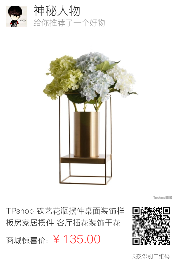 TPshop 铁艺花瓶摆件桌面装饰样板房家居摆件 客厅插花装饰干花花瓶
